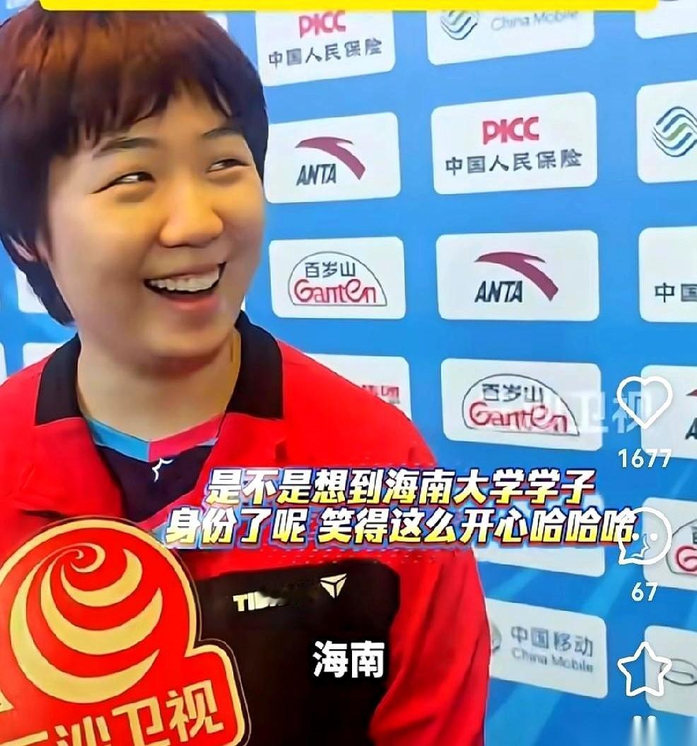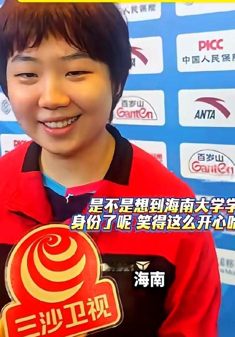 记者一句“我们是海南媒体的”,直接把蒯曼问懵了。 小姑娘刚打完比赛,累得够呛,突然被个记者大哥叫住,特自豪地亮明身份,然后一脸期待地问: “想对海南的观众说点什么吗?” 我隔着屏幕都能看到蒯曼脑袋上缓缓升起一个问号。 “啊?海南?” 哈哈,太可爱了这一幕。 后来我才反应过来,这哪是采访啊,这分明是“老家人”在认亲啊。 蒯曼是海南大学的学生,平时又总带着海南的“独苗”林诗栋满世界打比赛。 在海南媒体和球迷眼里,这孩子,早就是“我们自己人”了。 你说这事儿多有意思。 有时候你都不知道,在某个你没太在意的地方,已经有一群人,把你当成了他们的骄傲和牵挂。 你以为你只是在为自己的梦想拼,其实你早就成了别人生活里的一束光。 这种被人默默“收编”和“认领”的感觉,比拿了什么冠军都暖。 真的,太暖了。
