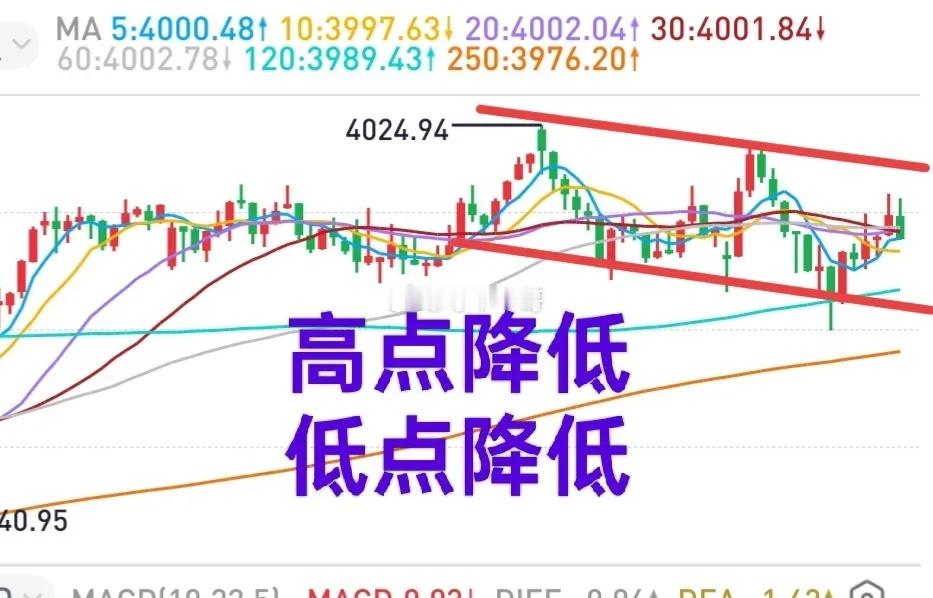 A股:高点在降低,低点也在降低,市场的重心是在下降的(图)。除了涨价方向之外(锂电材料),市场缺乏持续性热点。行业反内卷,要建立在市场需求之上,否则政策的有效性是要打折扣的。每天有不少股票涨停板,实际上可能是其中的资金在年底之前拉一把,为了业绩好看一些,并不一定说明行业或者上市公司经营情况有多么优秀。这其中必然会有大坑,这是需要投资者加以仔细甄别的。旱的旱死,涝的涝死。这是当前市场的基本情况,这种情况的根源以下几个:1,部分资金在撤退,或者说在保利润,降低了操作频次或在等待时机,市场整体操作趋于保守(防御)。2,年底了,有些资金是要回笼的,市场成交量相对缩减可能成为一段时间的常态。3,三季报业绩期已过,市场处于真空期,能刺激股价的因素减少了。大盘之所以还保持相对稳定,得益于权重股的表现(这段时间银行又霸屏了)。主力机构在各权重板块之间找平衡,把其它类股票遗忘了。操作比较困难,可以选择观望,不强迫自己交易。有些缩量下跌的股票,很难说是见到底部了,在成交量放大之前,最好不要轻易抄底。因为有时候股票的阴跌比暴跌是更可怕……上涨分时趋势看,市场的重心是下降的。因为高点下降的同时低点也下降了。关注趋势线附近的压力和支撑(图)。保持账户流动性!