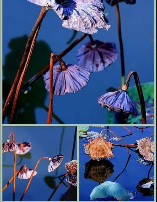 一剪梅.枯荷逸韵 组图配诗/美德庄户人 独立寒池意未休。瘦影疏枝,别样风流。 残蓬擎露映霞柔,不与春争,自守清秋。 曾记芙蕖满碧洲。香动兰桡,韵绕汀鸥。 如今静卧水云幽,梦在波心,待展新酬。 [烟花]寒池枯荷寄怀[烟花] 荷挺寒漪傲立枝,冰心唯与月相知。 休嗟盛景芳华逝,待赏佳期共岁时。 一剪梅原创诗联 雨打残荷 枯荷图 欣赏一剪梅 枯荷落雪