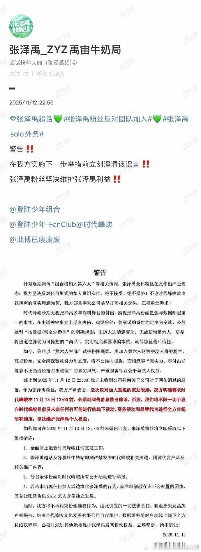 登陆少年各家全发文了,拒绝加入新人朱志鑫张泽禹张极左航苏新皓