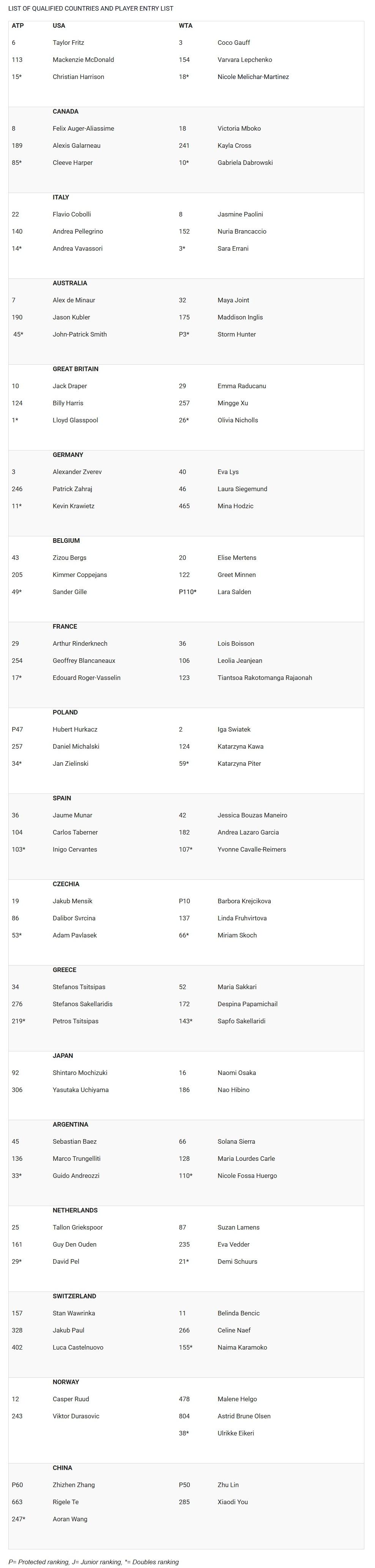 虎扑11月13日讯2026赛季联合杯公布入围名单,斯瓦泰克、高芙、保利尼、本西奇、大坂直美、姆博科、克雷吉茨科娃、拉杜卡努等球员亮相,朱琳将携手张之臻出战。抽签仪式将在11月17日进行。