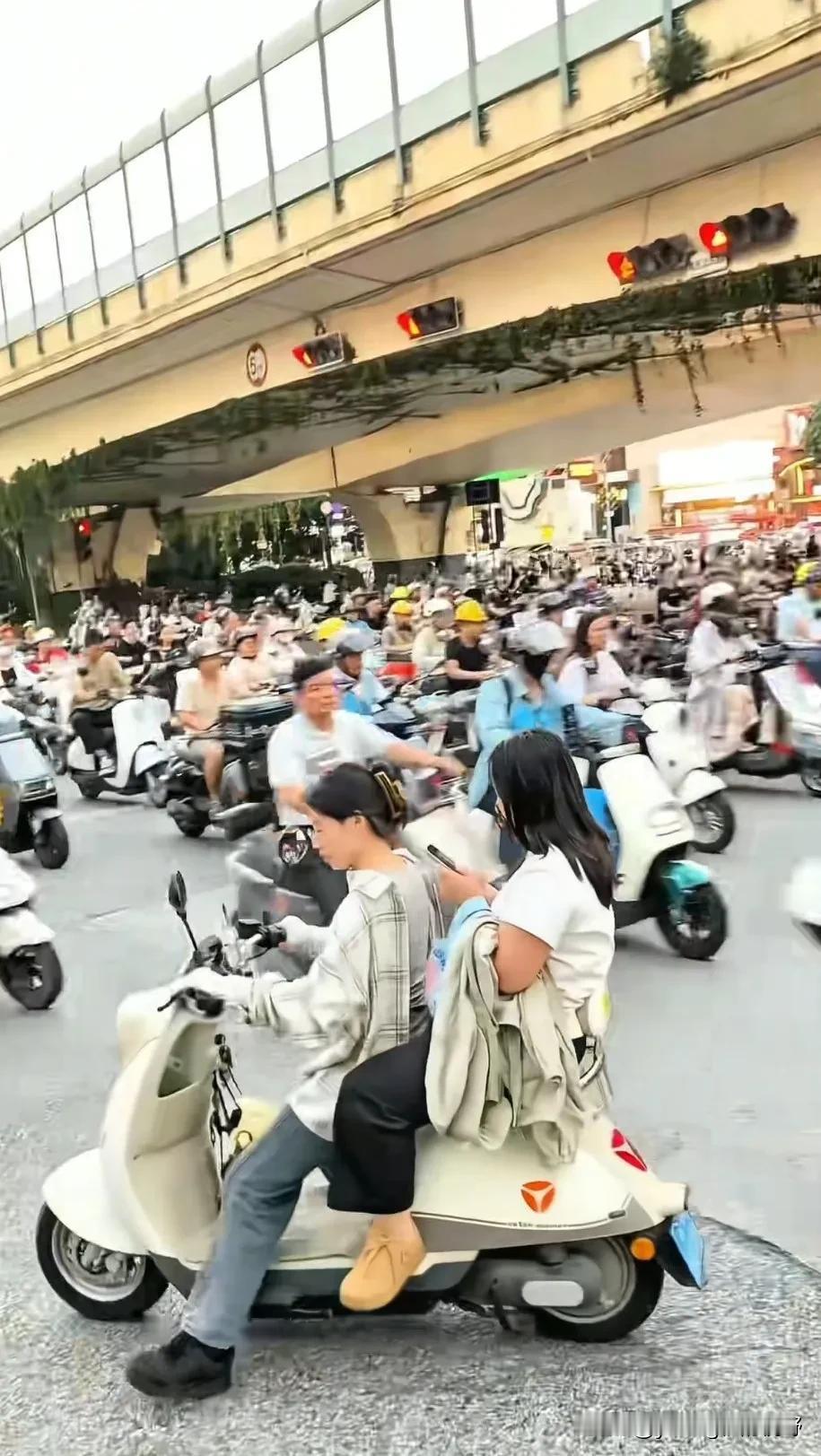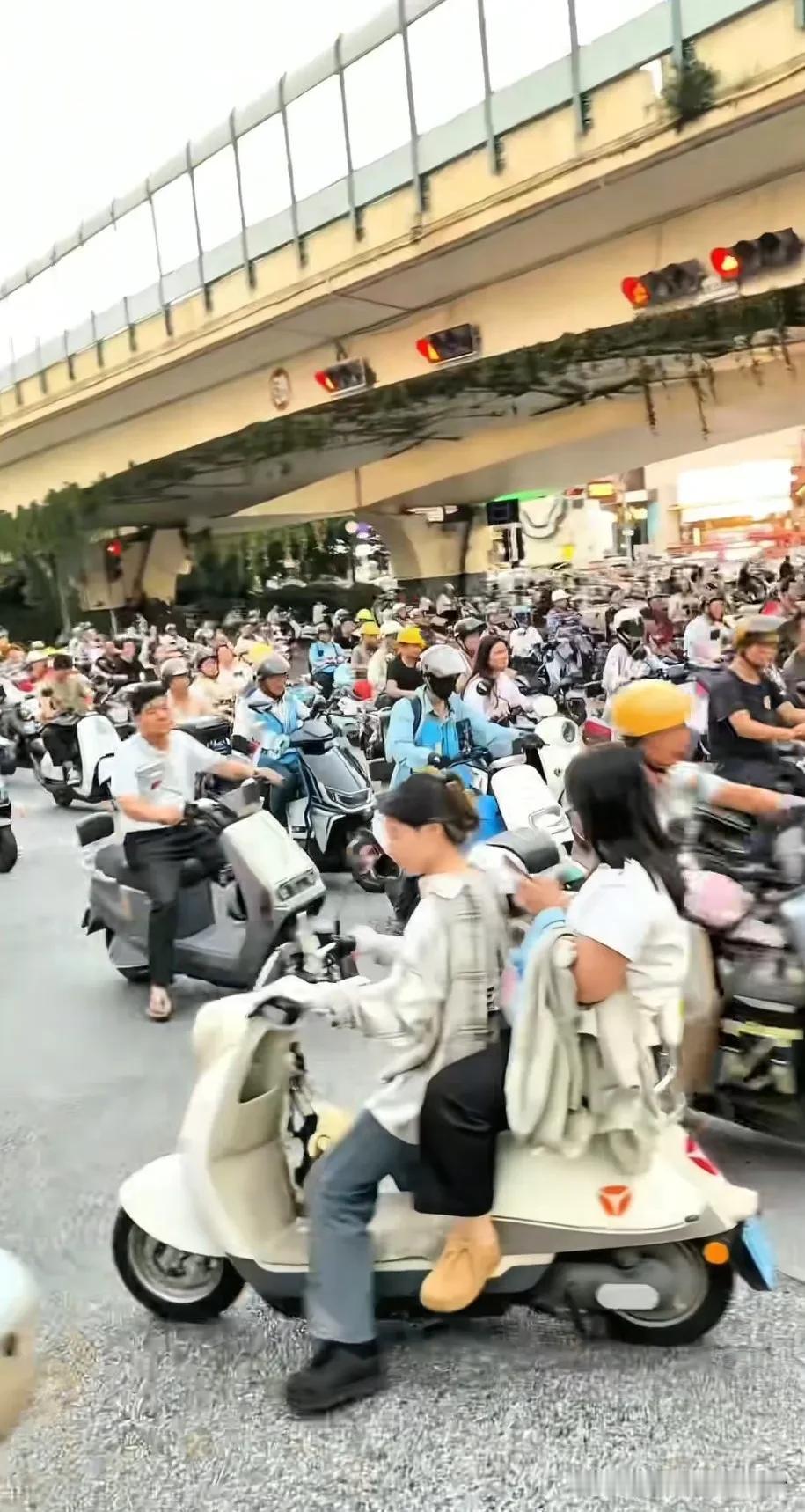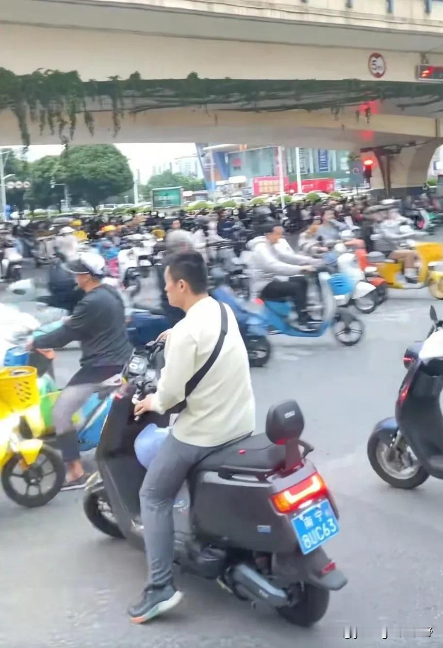 要说电鸡的壮观,南宁恐怕还是比广州更胜一筹了。网友在南宁街头拍下的这一幕电鸡大军,这场面真的太壮观了。在南宁大家都习惯了人手一台电鸡,出行都靠电鸡,也实在太方便了哈。