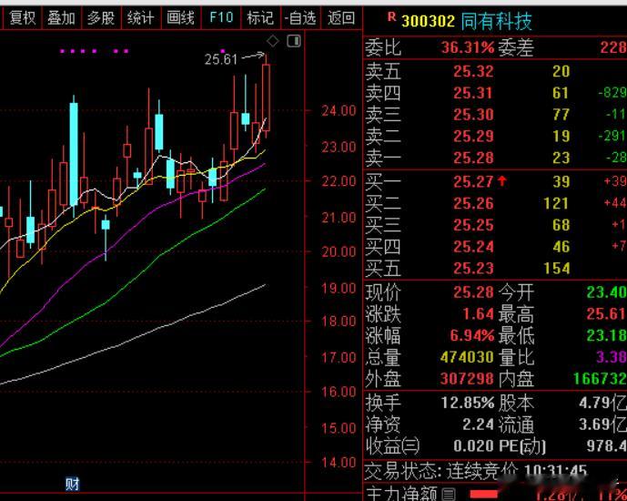 惊喜不断 周二里面关注的$同有科技 sz300302$ 现在向上向好 恭喜把握的友友 !