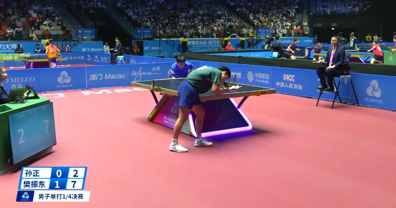 樊振东4:0赢了孙正。 孙正还在用樊振东乒超的打法, 就连发球, 都是东哥常用的逆旋转。 而樊振东已经有五套以上的发球体系。 东哥突然祭出一个高抛, 然后又一个侧旋转, 把孙正打懵了。 东哥从德甲回来后, 仅仅发球落点, 就有四五套配合打法, 太强大了。 孙正又上了一堂大师课。 (11-8 11-3 11-3 11-6 11-8)