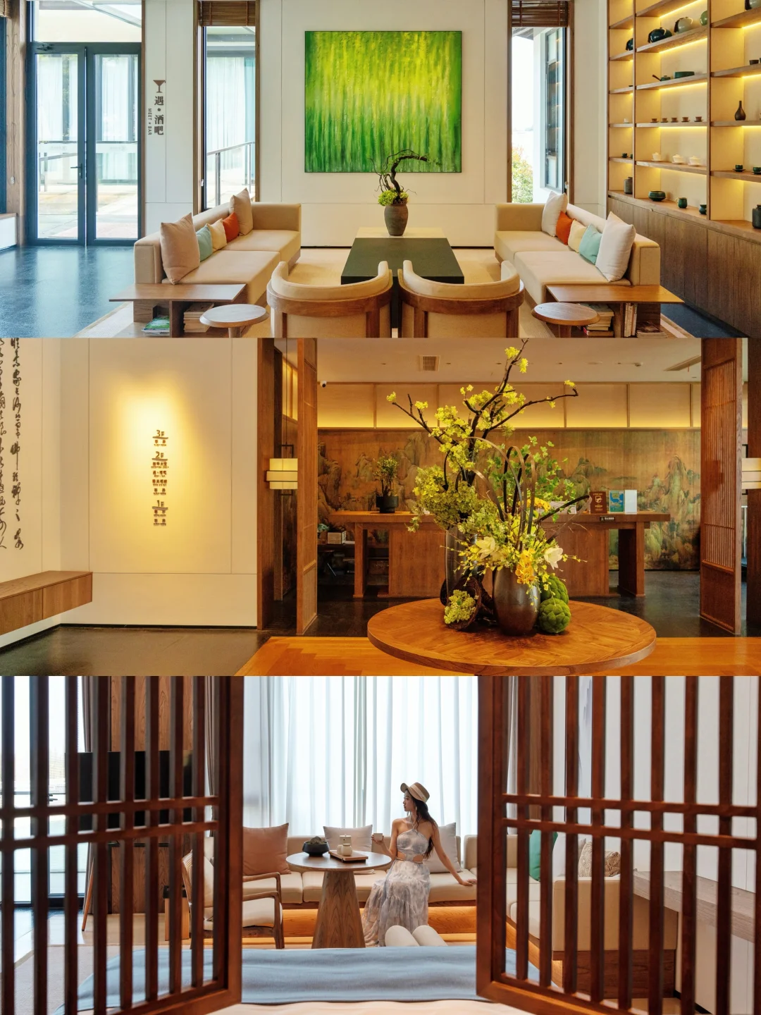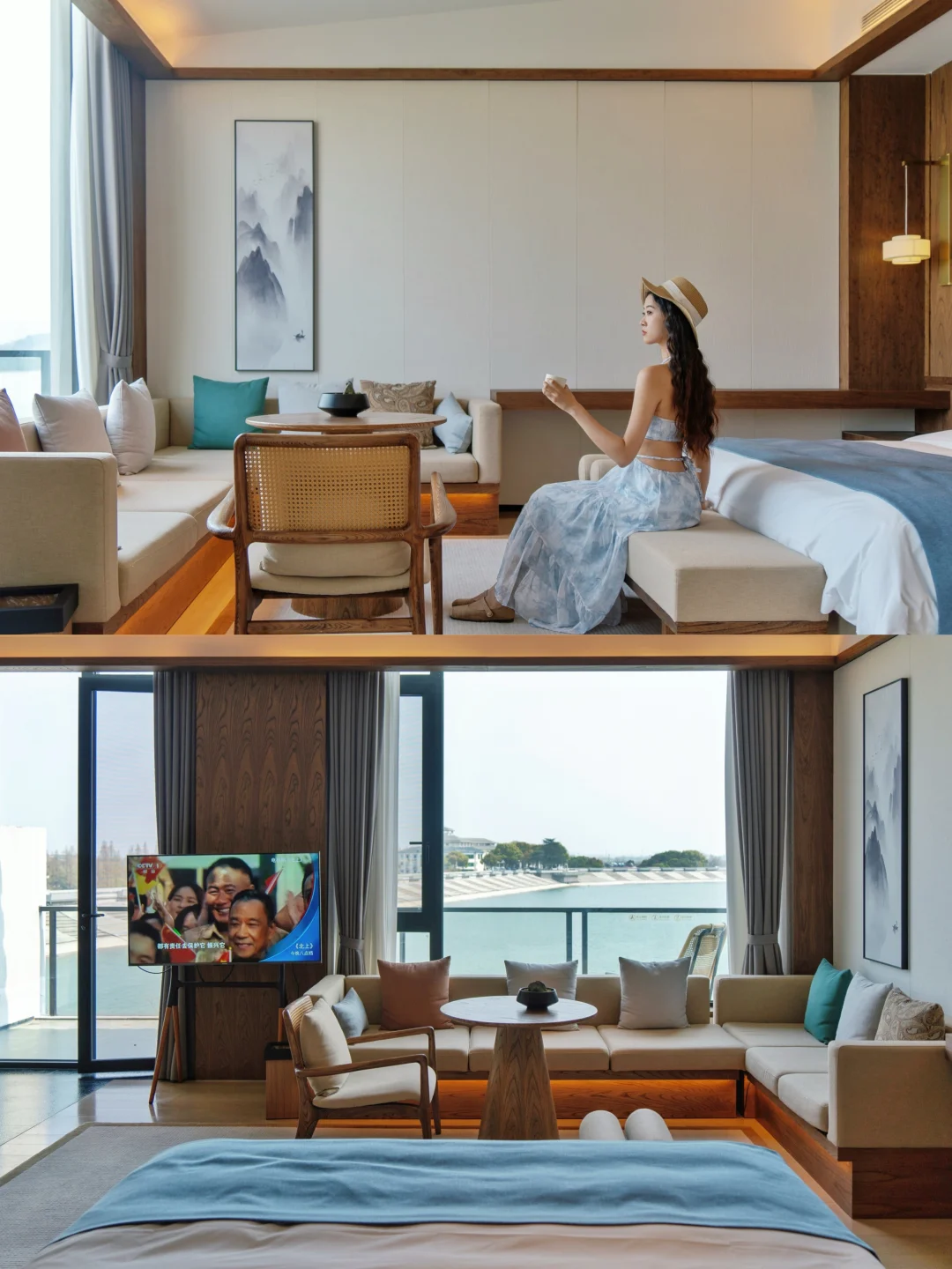 1️⃣我住的是天目湖遇·碧波园酒店,就在天目湖山水园门口,新中式风格禅意满满,躺在床上就能看天目湖的琉璃色,太舒服啦!!