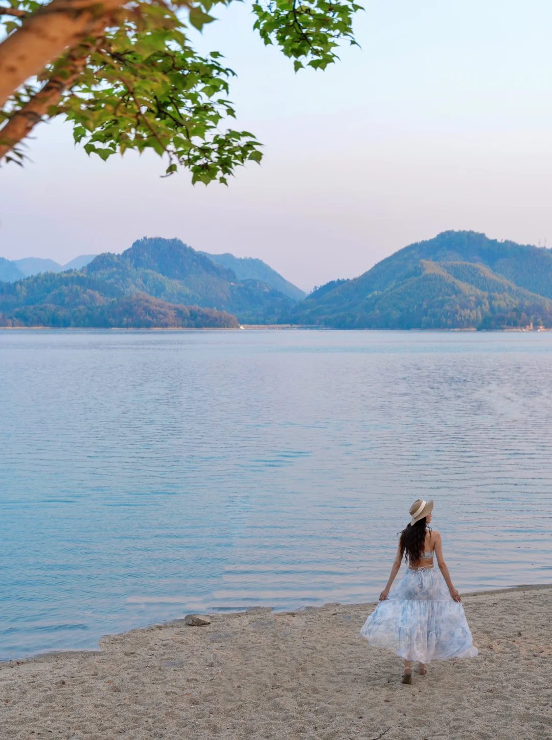 没想到在这个湖边还有一个沙滩,天气好的下午湖面是蓝色的,像是在海边一样好看