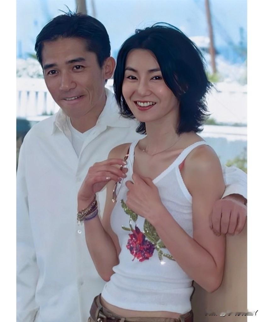 这张照片展现出了张曼玉和梁朝伟2000年在法国戛纳的情景,张曼玉当时36岁,媚眼如丝。梁朝伟38岁,儒雅痞帅。