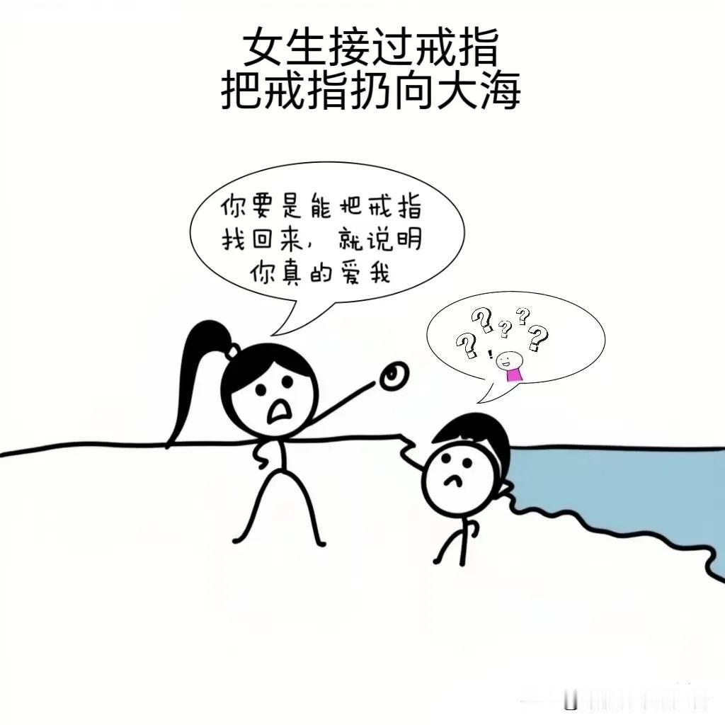 趣味漫画:情人节,男孩向暗恋许久的女孩求婚,女孩把戒指扔向大海说:你要是能把戒指找回来,就说明你真爱我,女孩正暗自庆幸,戒指很快就浮了起来