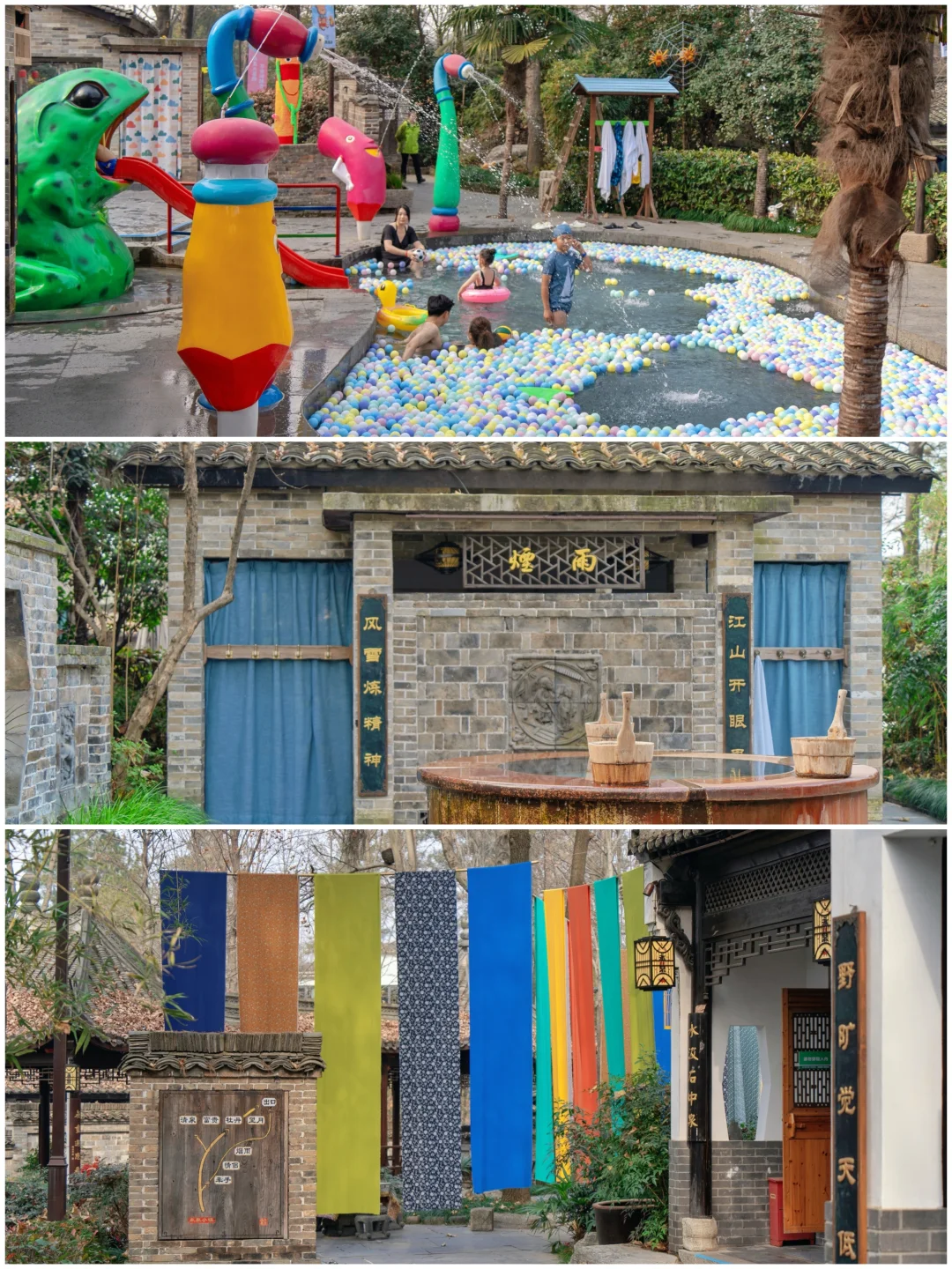 泡池有十几个都在室外,在江南古镇里面泡温泉,好舒服啊