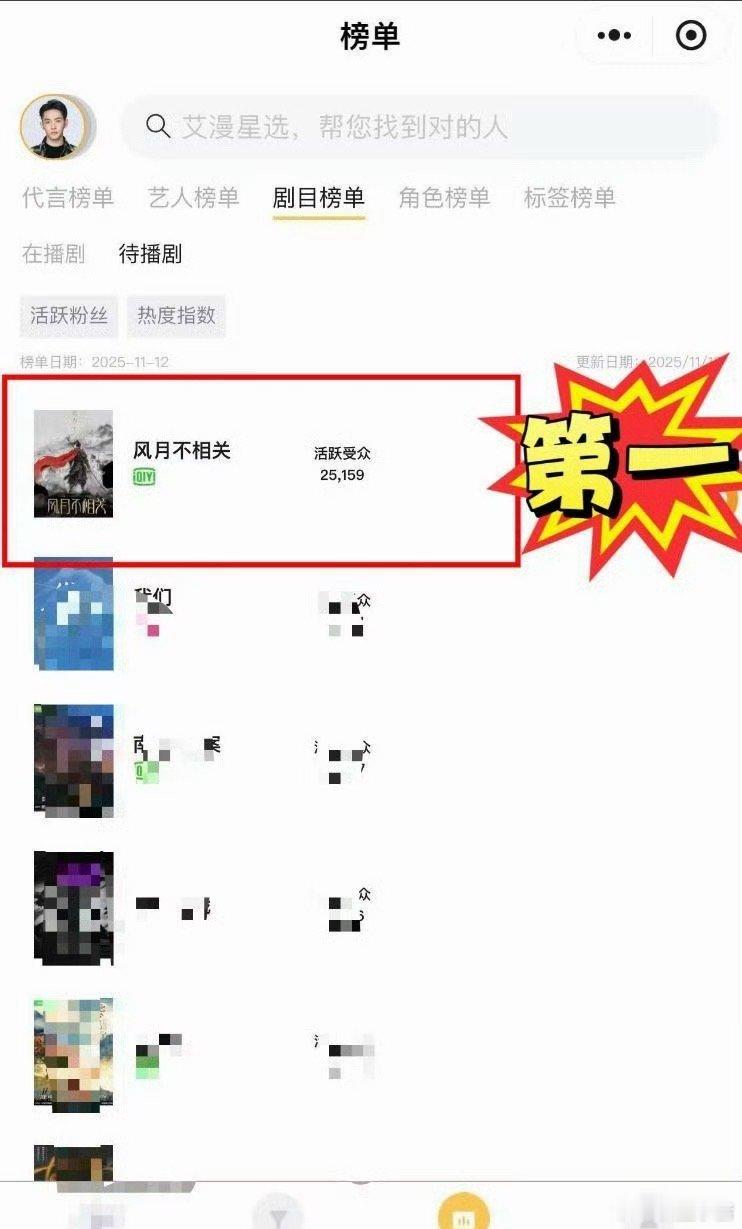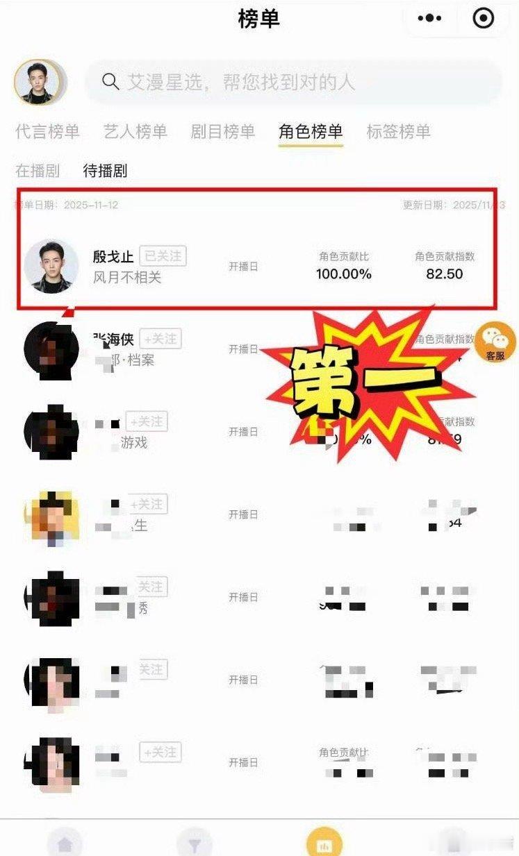 邓为待播剧《风月不相关》和角色殷戈止拿下艾漫角色贡献度、热度指数、活跃受众三榜第一!好厉害