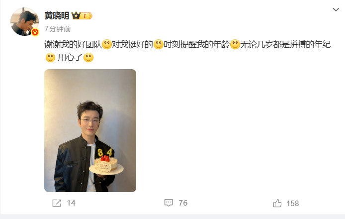 黄晓明生日发博,感谢团队在年龄话题上的时刻提醒,用风趣方式回应误传。坦然拥抱岁月