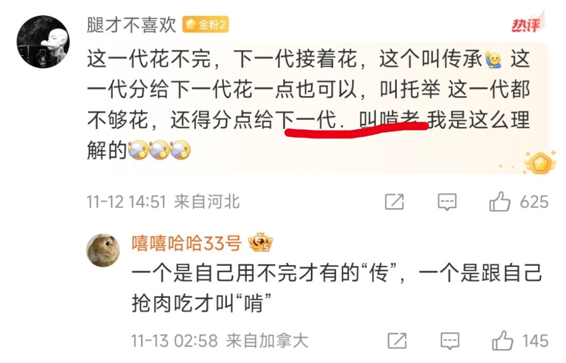 这几年也是这么理解的:凡父母自己不够花的,还要贴补下一代,都叫啃老。¹ 实际上,很多父母还要补贴第三代。² 很多人原本可以不用那么辛苦,已经把第二代、第三代贴补成废人了,还要挤牙膏一样吃干榨净。