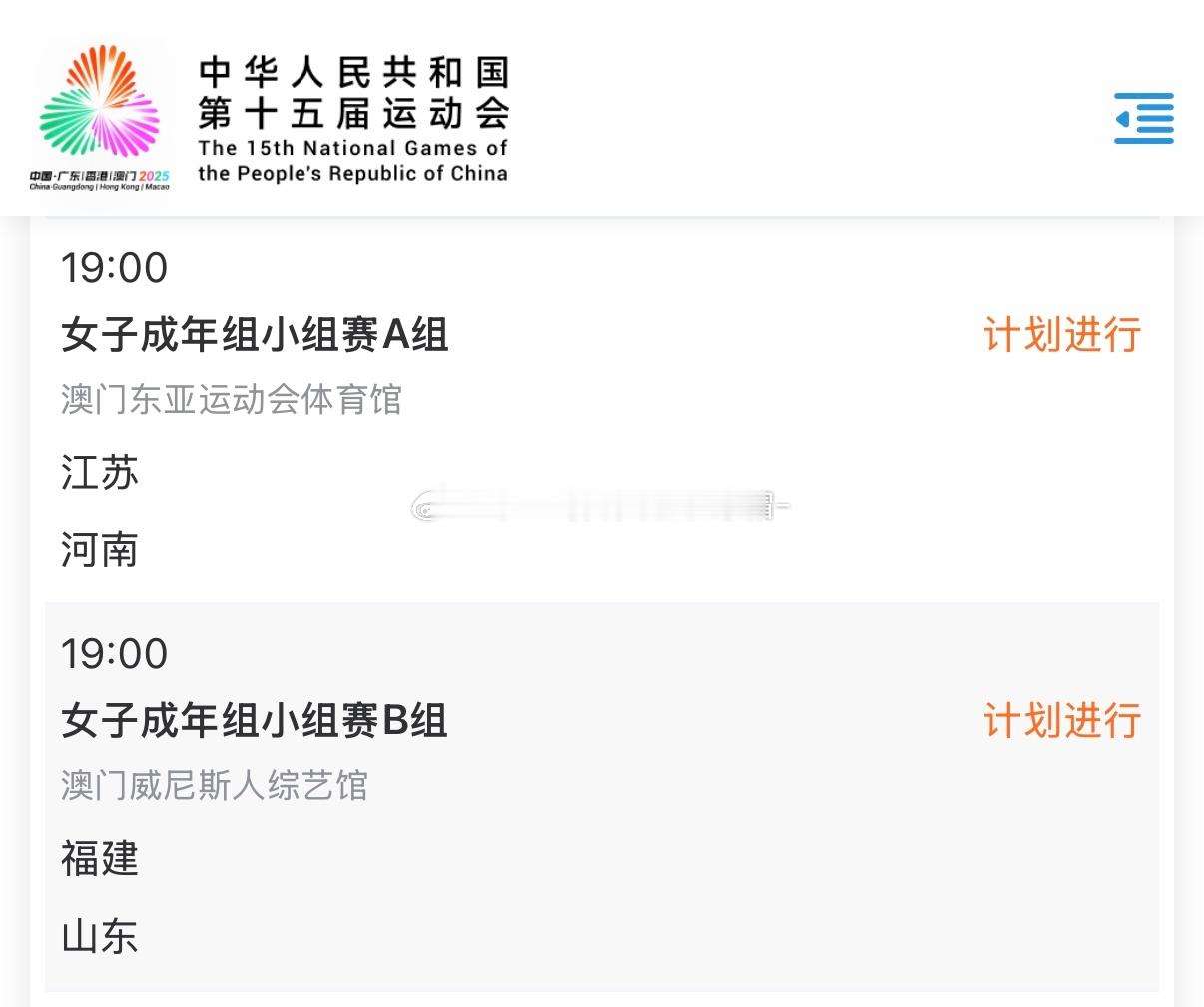 全运会成年组女排小组赛明天赛程如下图,重点关注:19.00 江苏vs河南16.00 北京vs天津你觉得江苏跟河南几几开?北京和天津呢?