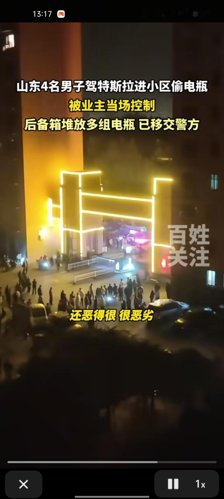 11月12日,济宁邹城市。四名男子驾驶特斯拉进小区偷电瓶,被小区居民及值班人员抓获,其所驾驶的后备箱多放多组电瓶。 目击者称,社区出于便利考虑,允许外部车辆登记后进入,正是因为这种相对开放的管理模式,让不法分子有了可乘之机。目前,涉事四人及被盗电瓶移交给警方,具体案件警方正在调查。