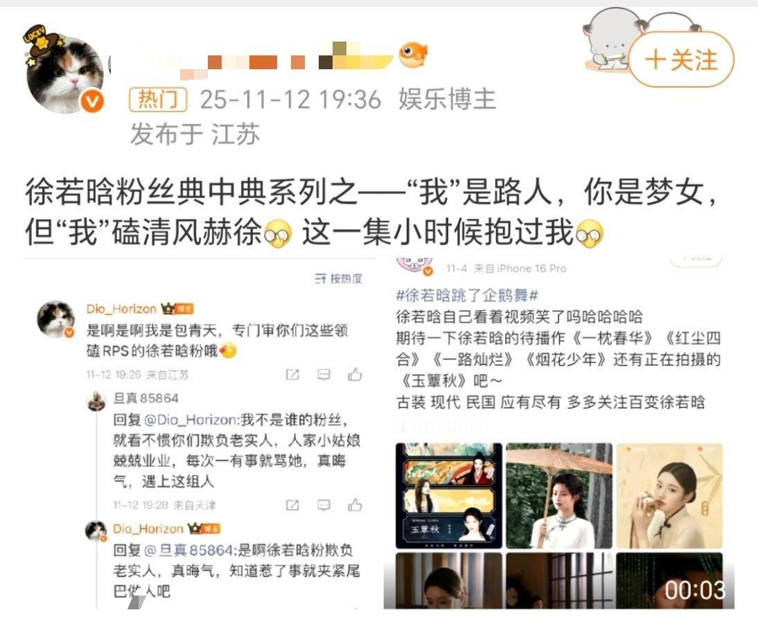 徐若晗昨天还被丞磊家扇了cp粉给丞磊道歉了看了下她家发言,好会打女⭕️装路人...
