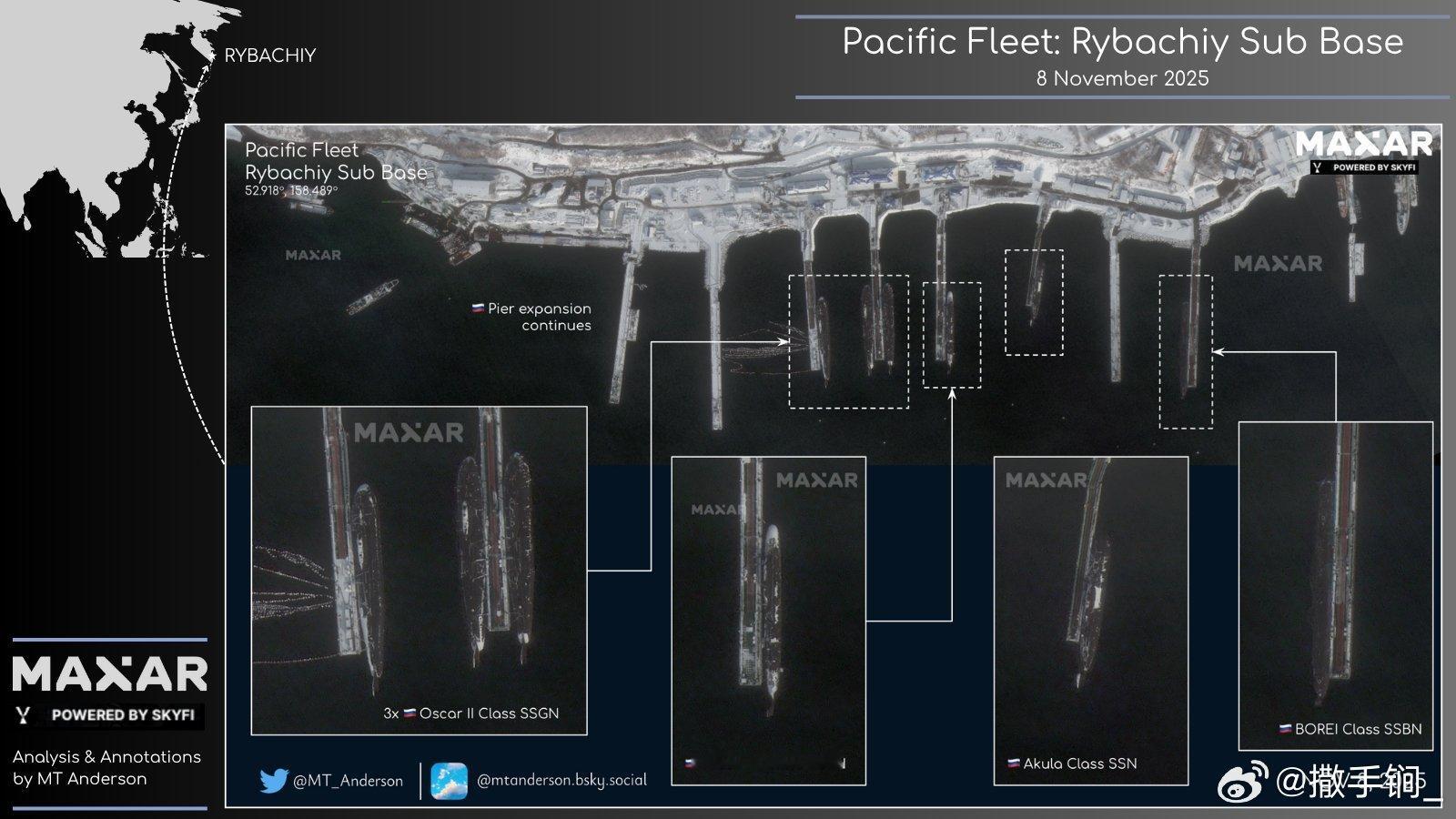 俄太平洋舰队雷巴奇潜艇基地卫图,琳琅满目
