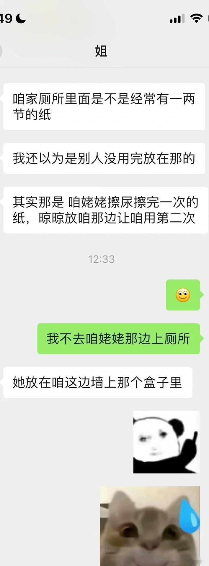 姥姥让我们二次使用她上厕所用过的纸