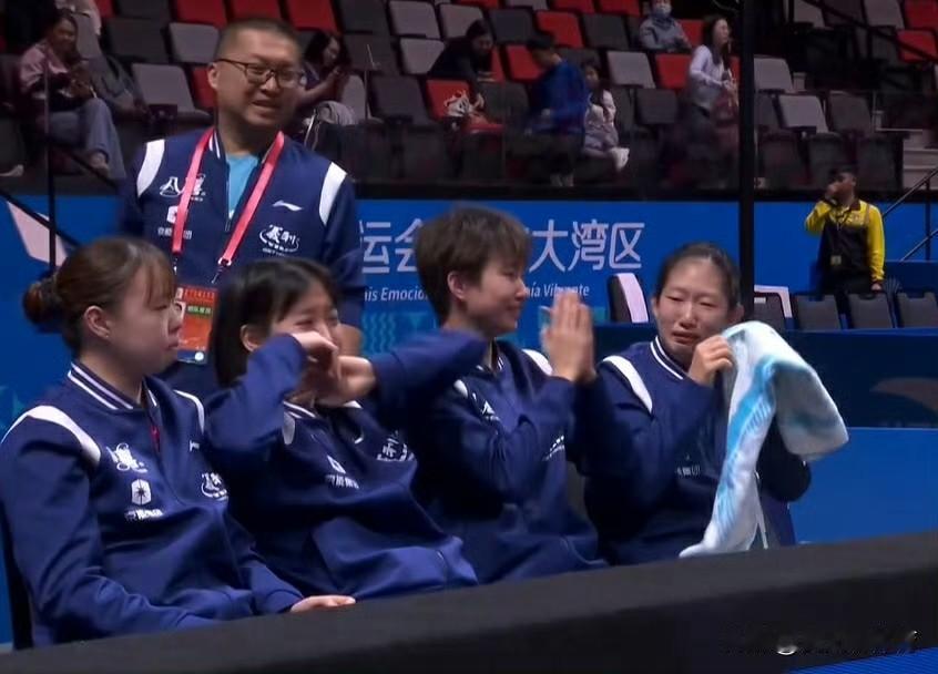 两边的小姑娘们嗷嗷哭[流泪]北京乒乓球青年队和山东队的姑娘们哭成了泪人,竞技比赛总是那么的刀人!乒乓球真的是让人又爱又恨的竞技体育啊!两支球队从中午12:30打到下午16:30,跌宕起伏的比赛,真的如过山车一样刺激!北京队的小将祝启慧才13岁啊,担任二单,一人独得2分,赢下决胜局后特别淡定,看着场下的姐姐们哭!山东队这边小姑娘们哭得站不起来,顾玉婷一直在安慰她们!