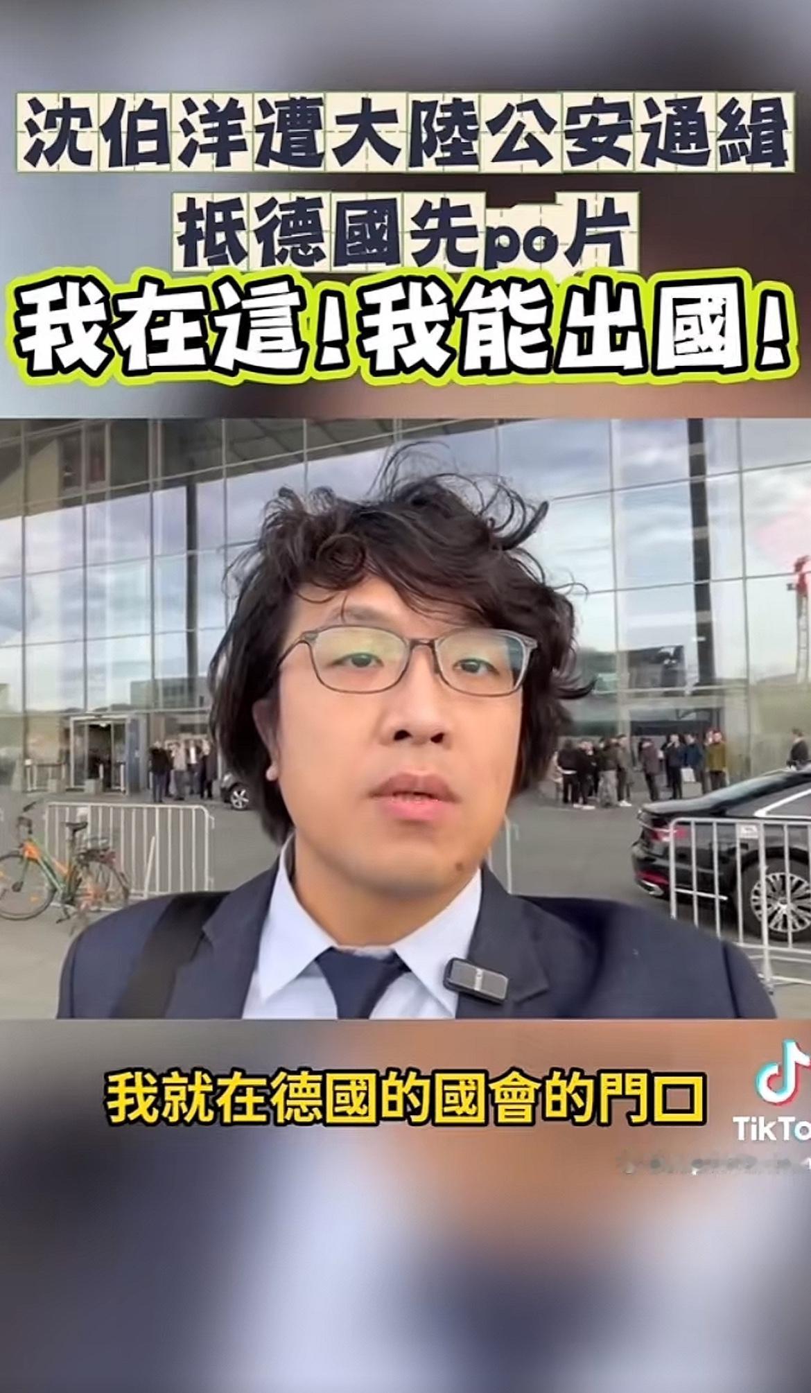 台独分子又搞新动作了! 沈伯洋跑德国去了! 公然现身德国联邦议院门口! 这是明晃