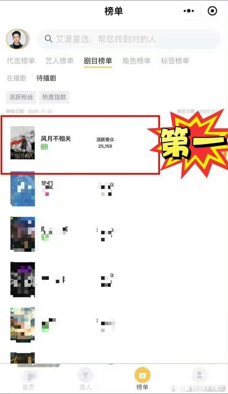邓为《风月不相关》在待播剧相关数据里获得多项第一,恭喜🎉