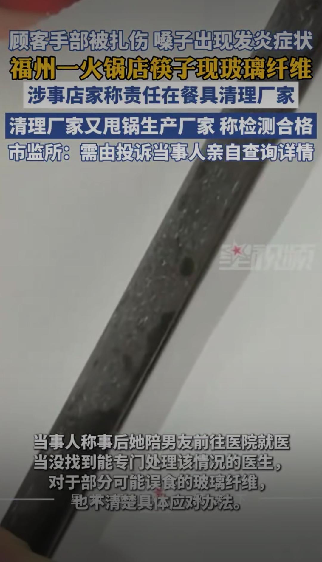 在福州的一家火锅店里,一场看似普通的用餐,却引发了消费者的巨大担忧。顾客在用餐过程中手部被扎伤,随即出现嗓子发炎、喉咙疼痛的症状。更令人震惊的是,事后检查发现,筷子中竟然夹带了玻璃纤维!这一幕,令人不禁心生疑问:我们的餐桌安全到底在哪里?谁在为这些隐患负责?福州火锅餐厅 事发后,店家迅速回应,称责任在“清理餐具的厂家”。他们似乎试图将责任推得一干二净,仿佛一切都只是供应链中的一环,无关他们的管理。而更令人愤怒的是,清理厂家又甩锅给生产厂家,声称“检测合格”,没有任何过错。这样的推诿,像极了“甩锅游戏”,让消费者的权益被无限放大了模糊的阴影。 然而,令人失望的是,市监所的官方回复更像是“推诿的借口”。他们表示:“需由投诉当事人亲自查询详情。”这句话,似乎暗示着消费者要自己去追责,自己去寻找真相。这种“事不关己”的态度,无疑让受害者感到更加无助,也让公众对餐饮安全的信心逐渐崩塌。 这场事件,折射出一个更深层次的问题:我们到底在吃什么?餐饮行业的监管是否只停留在“合格检测”这道门槛上?一旦出现问题,责任划分就变成了“推责游戏”,而消费者的权益却被搁置一旁。这不禁让人反思:我们对食品安全的底线在哪里?我们是否还在盲目追求“味道”与“便捷”,而忽略了最基本的安全保障? 更令人担忧的是,玻璃纤维的出现,意味着在餐具的生产、检验、使用环节,可能存在多重漏洞。这样的隐患,难道只是个别事件?还是行业潜规则的冰山一角?每一次的“推诿”,都像是在告诉我们:只要没有发生大规模事故,责任就可以无限推迟,安全就可以被随意忽视。 作为消费者,我们是否还愿意继续“被动接受”?我们是否应该站出来,要求更透明、更严格的监管?毕竟,餐桌上的安全,关系到每一个家庭的幸福与健康。我们期待的不仅仅是一个“解决方案”,更是一份对生命安全的尊重和承诺。 这起事件,或许只是冰山一角,但它提醒我们:食品安全,不应成为“责任推诿”的游戏,而应成为每个人心中的底线。让我们共同呼吁,让那些隐患无处遁形,让责任回归到应有的位置。只有这样,我们的餐桌,才能真正安全、安心。