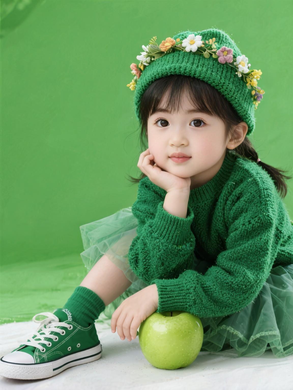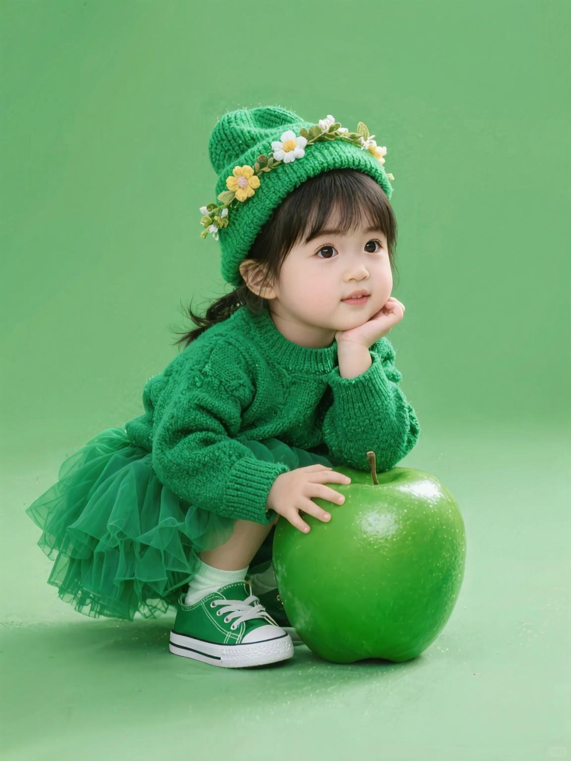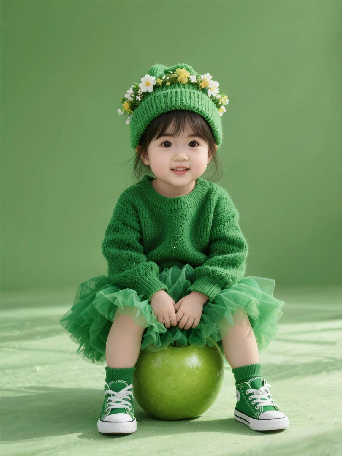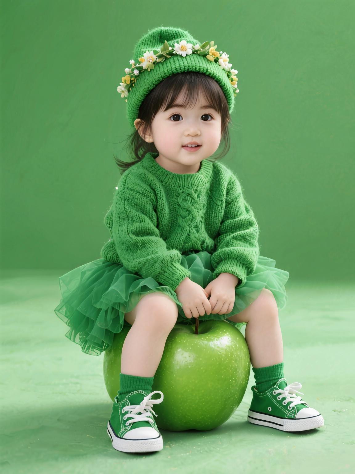 萌娃坐苹果