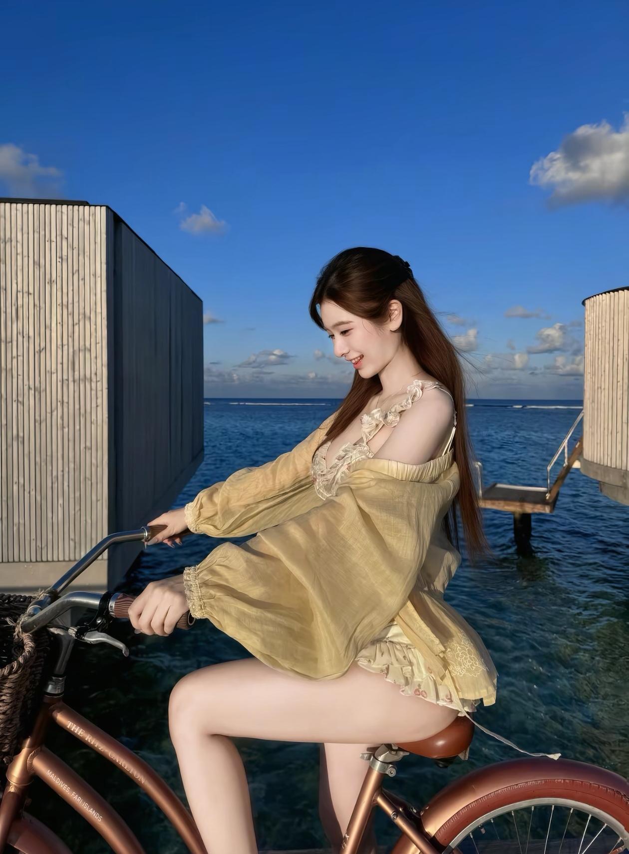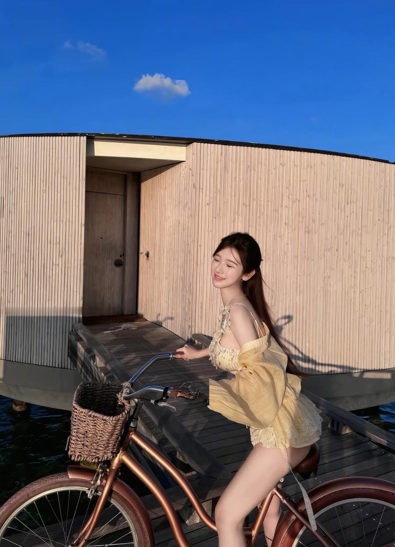 在蓝色街头,撑起一把黄色伞,享受阳光与微风。
