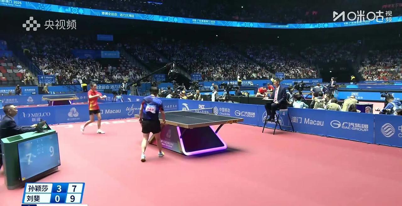 孙颖莎强势晋级女单四强! 莎莎打得真好,这一场就是打削球的视频宝典[赞][笑哭]! 刚刚结束的一场第十五届全运会乒乓球女单1/4决赛中, 孙颖莎4-0击败本届全运会的黑马削球手刘斐,晋级女单四强! 四局比分为:11-1,11-7,11-4,11-9。 第四局莎莎3-8落后,结果一路追回来了,尤其是7-9这球,太爽了!孙颖莎女神[赞]! 遗憾的是直播出现问题,这2025四年一次的全运会,球迷们在看默剧乒乓球比赛[捂脸]。