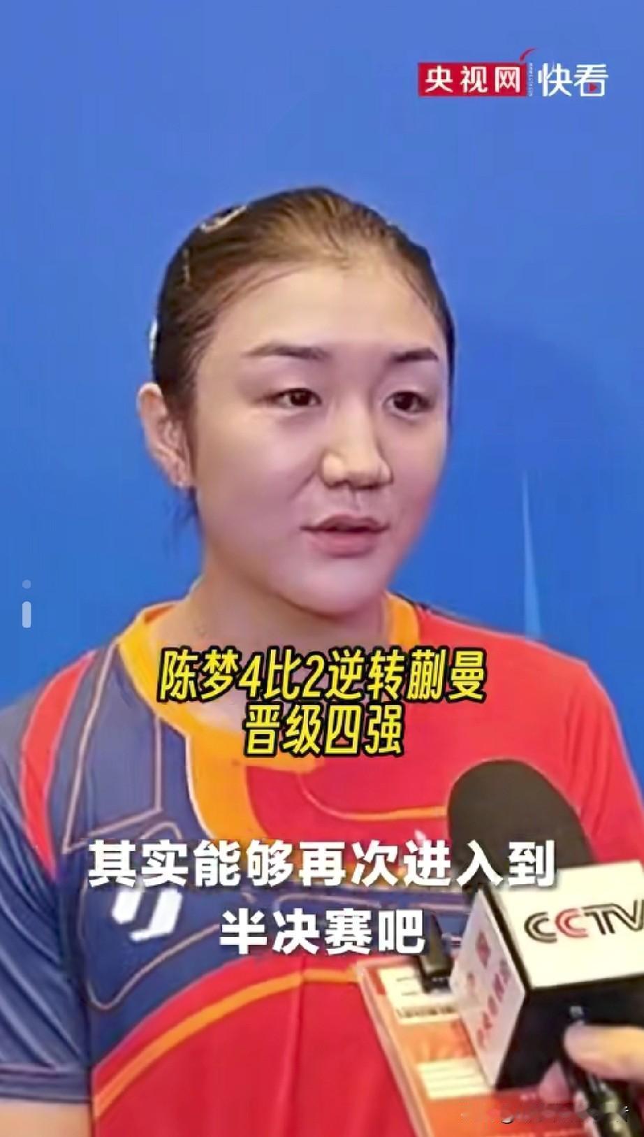 陈梦惊天逆转!0-2落后连扳3局杀入全运4强 谁也没想到,刚刚在奥运夺冠的陈梦,会在全运会赛场被逼入绝境!面对00后小将蒯曼的猛烈冲击,她开局就连丢两局,现场观众心都提到了嗓子眼。 但冠军之所以是冠军,就在于绝境中的爆发! 从第三局开始,陈梦的眼神变了——擦汗时从容不迫,系鞋带时沉稳有力,就连示意裁判擦球台都冷静如常。这份“稳”,让所有人看到了逆转的可能。 真正的转折点在第四局!蒯曼两次拿到局点,眼看就要终结比赛。关键时刻,陈梦展现了大满贯的实力与韧性,硬是咬紧牙关,以14-12拿下这生死一局! 此后比赛彻底进入她的节奏,连赢三局完成惊天逆转!赛后她坦言:“打得格外累,但很惊喜。”更暖心的是,她真诚夸赞蒯曼:“现在的小将进步太快,我都有点跟不上。” 这就是冠军的格局——既能在逆境中爆发,又能在胜利后谦逊。 半决赛她将迎战王曼昱与王艺迪的胜者,这场巅峰对决你看好谁?陈梦能否延续火热状态?来评论区说出你的预测!