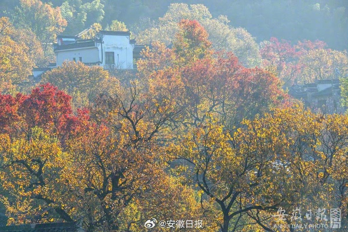 【,这个周末去看吧!】 11月12日,安徽黟县最新发布的塔川红叶指数预报显示,塔川秋色盛宴的各式珍馐已全面“上桌”:树叶色彩指数:85%;色彩面积:90%;观赏指数:95%。塔川红叶层次分明,现已进入最佳观赏期!(安徽日报)
