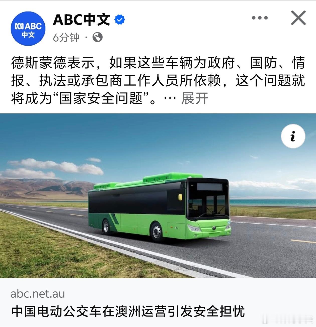 澳媒呼吁澳大利亚跟风北欧审查中国电动车的国家安全问题丹麦和挪威指责中国电动大巴威胁其国家安全而进行审查,澳媒ABC发现有中国电动公交车也行驶在澳大利亚的道路上,这种情况引起了网络安全专家的担忧。挪威政府指责宇通集团能通过网络对公交车进行软件更新和问题诊断。于是认定“理论上说,这有可能被利用以影响公交车运行”可能会被远程关闭。网络安全公司CyberCX的首席战略官麦吉本,呼吁澳政府“积极考虑”禁止公务员或政界人士使用所有中国制造电动车,或禁止这些车辆出现在政府拥有的建筑区域内。他说“简单的事实就是,我们最大的贸易伙伴也可能是我们最大的威胁,我们需要做出理性决定,”他说。同时,还要承认没有“简单的解决方案”。