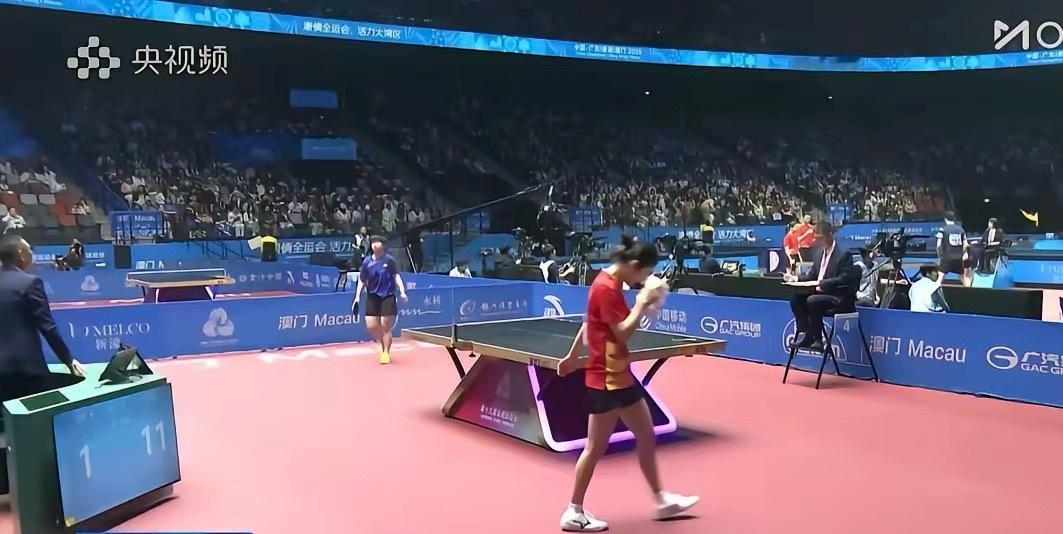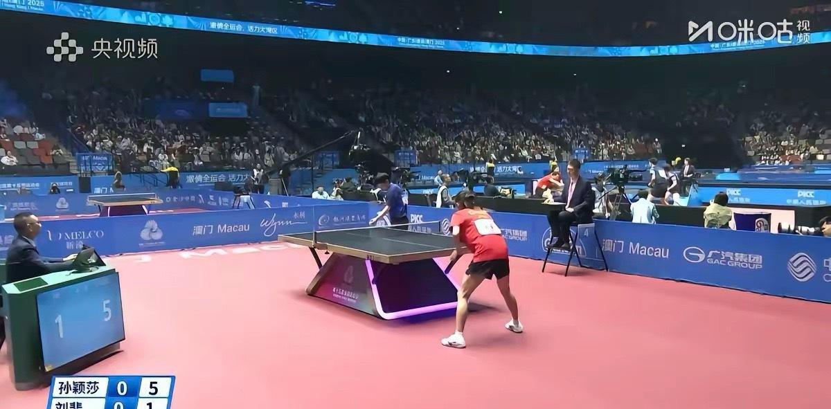 孙颖莎状态火热!横扫黑马削球手,晋级女单半决赛将战朱雨玲!今晚,第十五届全运会乒乓球成年组女子单打1/4决赛,河北队的孙颖莎对阵辽宁队削球手刘斐。4:0(11:1、11:7、11:4、11:9),孙颖莎速胜刘斐,顺利晋级女单半决赛。半决赛,孙颖莎将和澳门队的朱雨玲争夺一张决赛门票。
