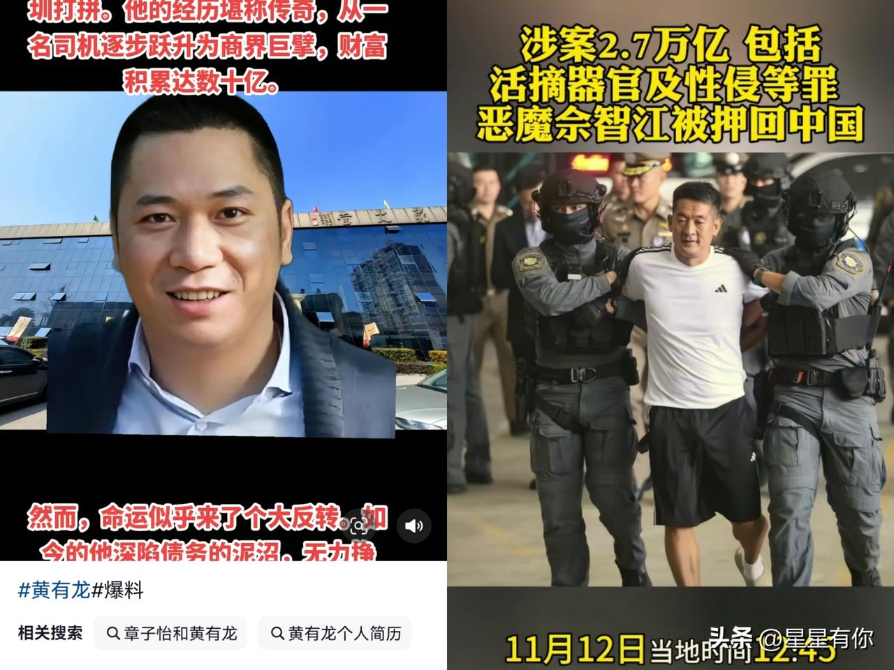 网传佘智江投资的电诈园启动资金与黄某有关,那怪不得小燕子要和他离婚,黄某龙现在下落不明! 网传他电诈园的启动资金和黄某有关,小燕子果断离婚怕是早看透了这趟浑水,现在黄某龙下落不明,佘智江被引渡回国,这背后的牵扯想想都头皮发麻。 别觉得他是“白手起家”,他的发家史全是坑害国人的黑钱,所谓的“亚太新城”根本就是犯罪窝点。没有底线的暴富从来不是本事,是踩着无数家庭的痛苦往上爬。 天网恢恢疏而不漏,跨境赌诈再隐蔽也逃不过制裁。你们觉得佘智江还会牵扯出多少隐藏的同伙?来评论区聊聊你的看法~跨国电诈集团