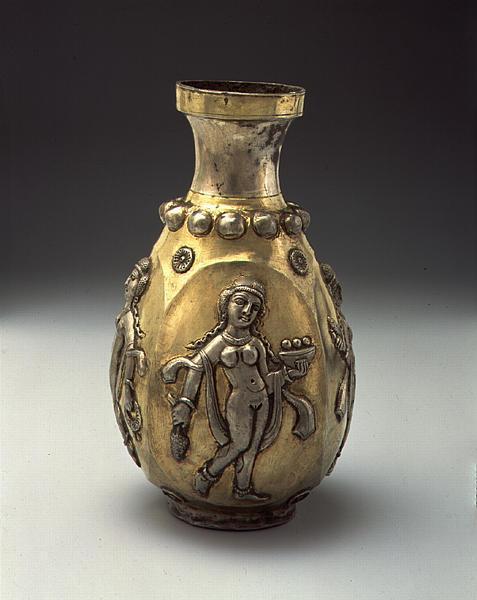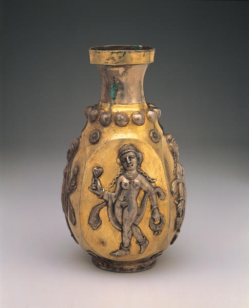 日本美秀美术馆藏6世纪萨珊王朝的银鎏金乐舞人物纹瓶
