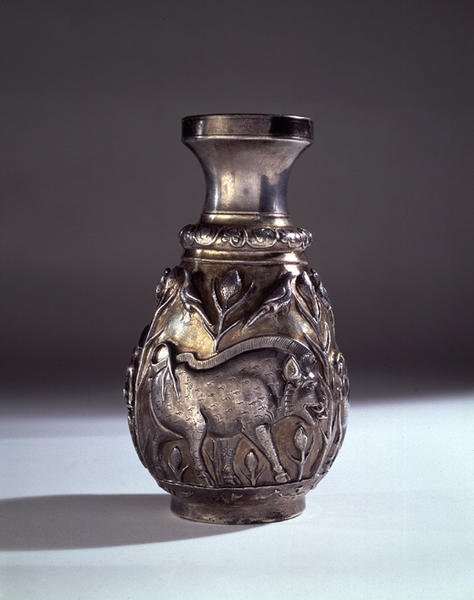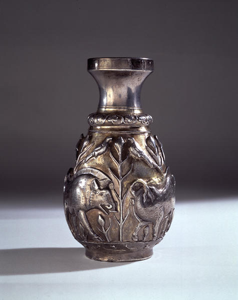 日本美秀美术馆藏4-5世纪萨珊王朝的银鎏金野猪纹瓶