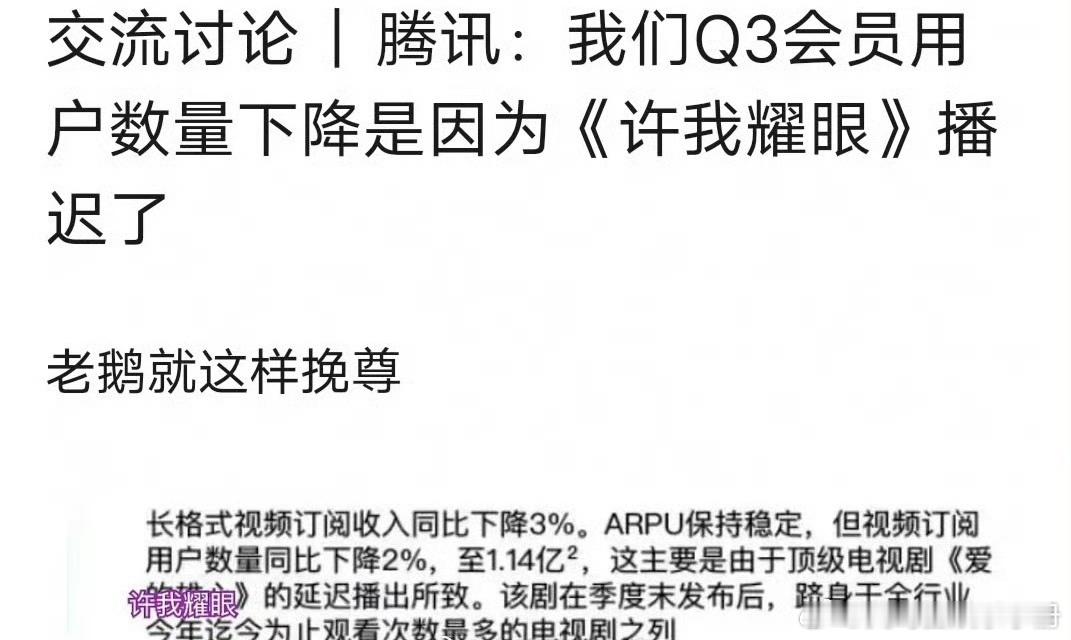 有效播剧!腾讯2025年第三季度财报中提到迪丽热巴《利剑玫瑰》,赵露思《许我耀眼