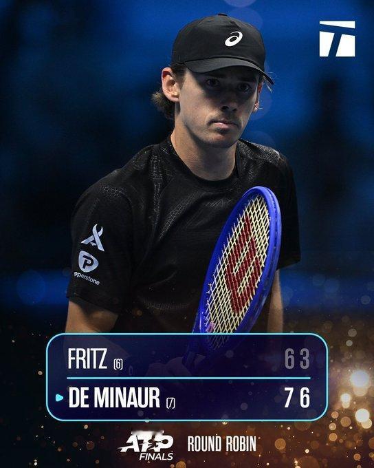 输掉这场比赛,弗里茨也输掉了一年!随着德米纳尔7-6/6-3击败弗里茨,弗里茨彻底无缘总决赛四强,阿卡提前出线。该小组晋级形势也只剩两种可能: 1、阿卡胜穆塞蒂,则阿卡小组第一,德米纳尔第二,并且阿卡锁定年终第一。 2、阿卡输穆塞蒂,则阿卡小组第二,穆塞蒂第一,但在半决赛,阿卡就要遭遇辛纳,这肯定不是阿卡想要的结果。
