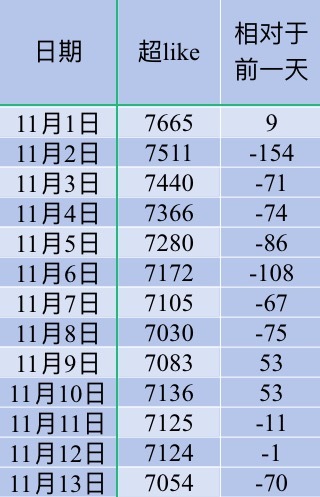 wxy 昨天的超喜欢和发帖人数下降了,但超喜欢底数上升