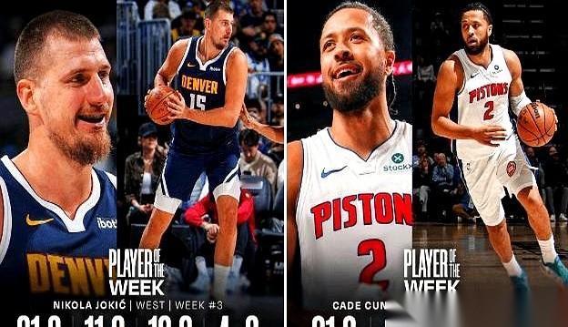 活塞东部第一? 我揉了揉眼睛,掐了自己一下,是真的。 这世界真就这么魔幻。 那个叫坎宁安的小伙子,一周场均31分,带着球队4胜0负,愣是把万年鱼腩底特律给带到了东部榜首的位置。 多少年了。 真的,多少年没见过活塞这么扬眉吐气了。 感觉就像你家那个总考倒数第一的亲戚小孩,突然有一天拿了个奥数金牌回来,你除了震惊,就是由衷地替他高兴。 这孩子,是真基石。未来几年,东部要热闹了。 然后你再看西部。 约老师,约基奇。 就显得那么“平平无奇”。 为啥说平平无奇?因为这家伙拿三双,已经跟我们干饭喝水一样自然了,你甚至都懒得去惊讶。 又是场均30+的三双,又是带着球队一周全胜。 他好像已经不是在打球了,是在给所有中锋上公开课,告诉他们:喂,这才是这个位置的天花板。 不,天花板可能都困不住他。 一个,是绝地反击,把一支烂队扛在肩上,硬生生砸出了个未来。 一个,是独孤求败,把自己的极限,变成了别人的日常仰望。 这周最佳,你告诉我,除了他俩,还能有谁? 服了,是真服了。