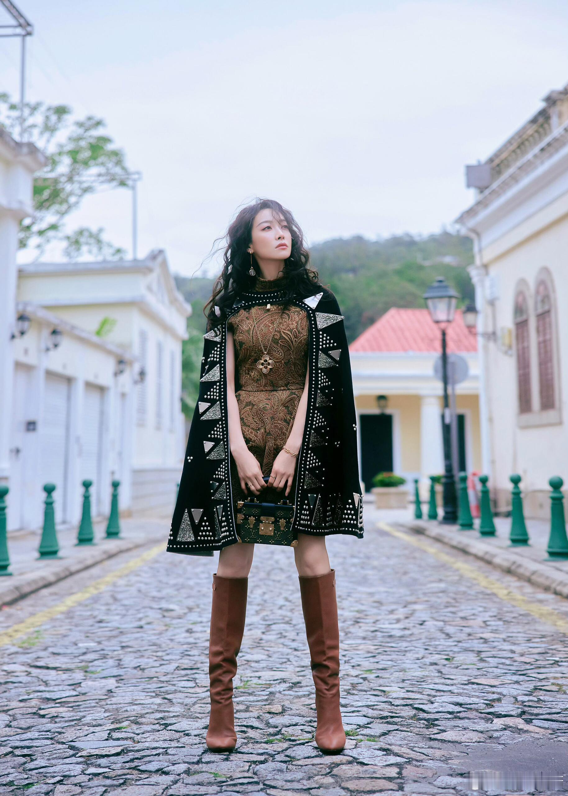 宋茜身着Louis Vuitton亮相澳门2026早春大秀,代言人气场全开!个性卷发+斗篷长靴,轻松拿捏时尚感~