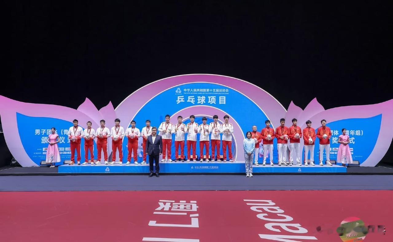 第十五届全国运动会·乒乓球项目 青年组混双、团体颁奖仪式图集📷 男团冠军🥇