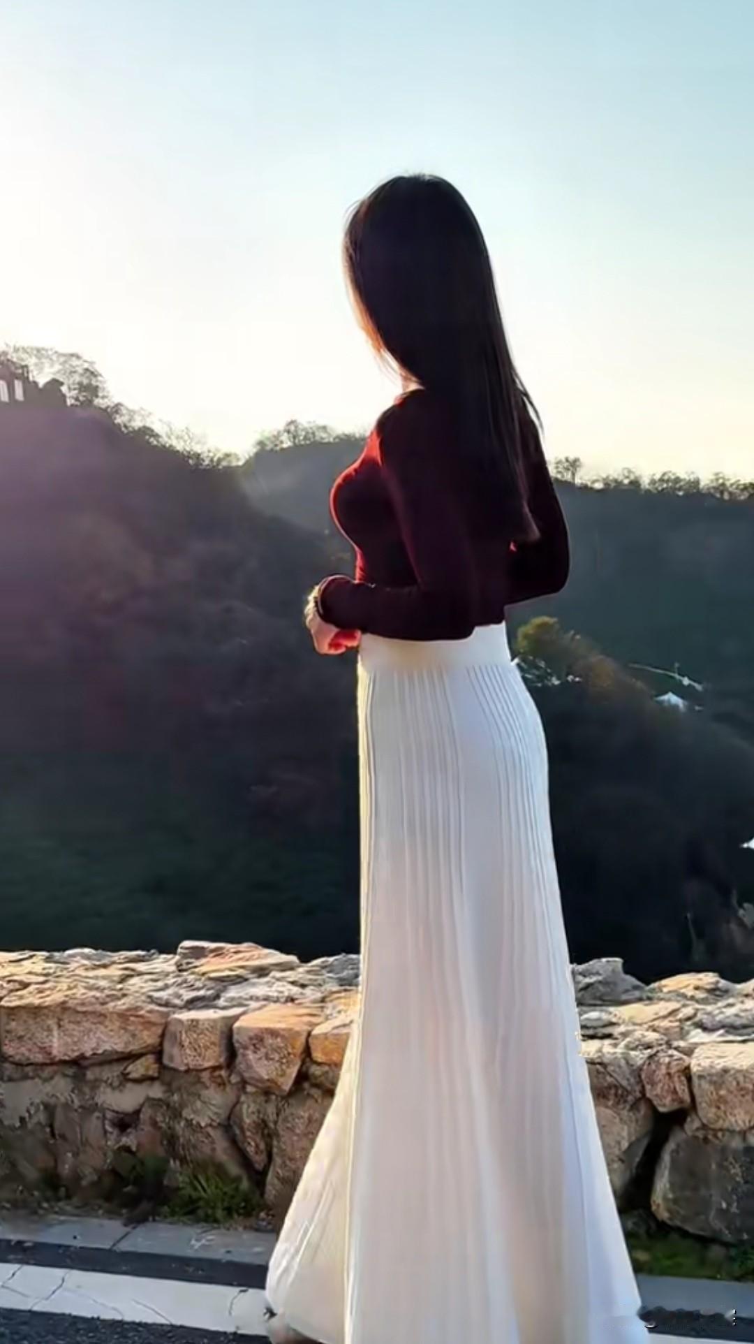 独立寒秋,夕阳红袖。秋日 背影杀 极品美女穿搭