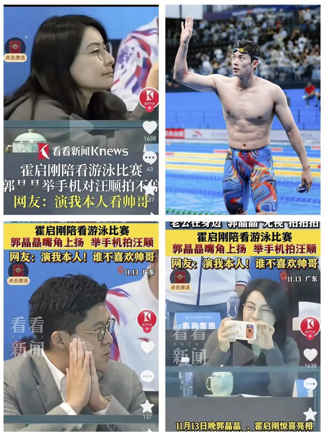 这下估计霍启刚坐不住了 霍震霆也坐不住了 霍启刚千辛万苦找到的媳妇,现在倒是手机直拍汪顺! 霍启刚和郭晶晶今晚一同现身游泳比赛现场,没想到遇到一件令人哭笑不得的事儿。 解说员在比赛中竟把霍启刚叫成了霍震霆,心里肯定不爽。郭晶晶今晚跟随老公霍启刚一起来到现场为东方大国游泳队加油助威,在汪顺200米混合泳半决赛时,郭晶晶看到小师弟汪顺表现出色,兴奋地拿出手机拍照,对这位小师弟也是欣赏得不得了。 霍启刚坐在一旁,看着妻子拿起手机给汪顺拍照,心里不知道作何感想,见妻子这副模样,是不是觉得自己该多锻炼锻炼,增加一下妻子的好感呢? 网友说:刚子是不是有危机感了[呲牙] 又有网友说:伴侣应该理解这种基于专业的欣赏行为。