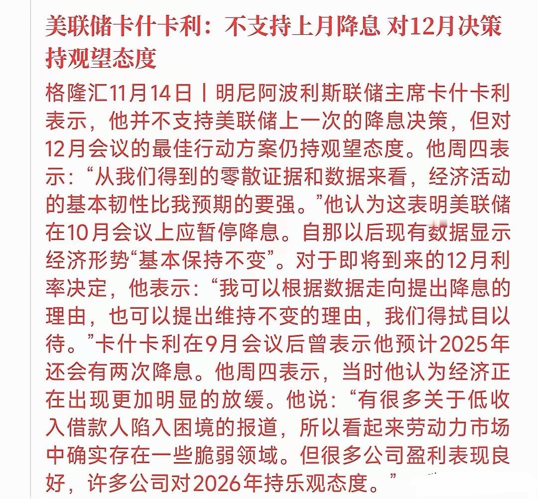 美联储施压,美股再次暴跌,今天A股也会以调整为主昨晚,美股三大指数全线大跌,纳斯达克指数暴跌2.29%,道琼斯指数大跌1.65%,英伟达再次大跌3.58%,本周累计跌幅0.69%,微软跌1.54%,特斯拉跌6.64%。原因在于美联储官员发声认为货币仍然需要紧缩,12月降息预期变得再一次渺茫,投资者对于经济的预期表示担忧。昨天A股大涨,今天由于外围压力今天科技股也会跟着一起调整,尤其是科技股方向,将会面临新一轮的下跌。指数上面现在已经在4000点以上,不用担心了,只要不跌破4000点牛市趋势就在,锂电池板块还会继续强势,今天就看这个板块,白酒,券商仍然是托底板块。