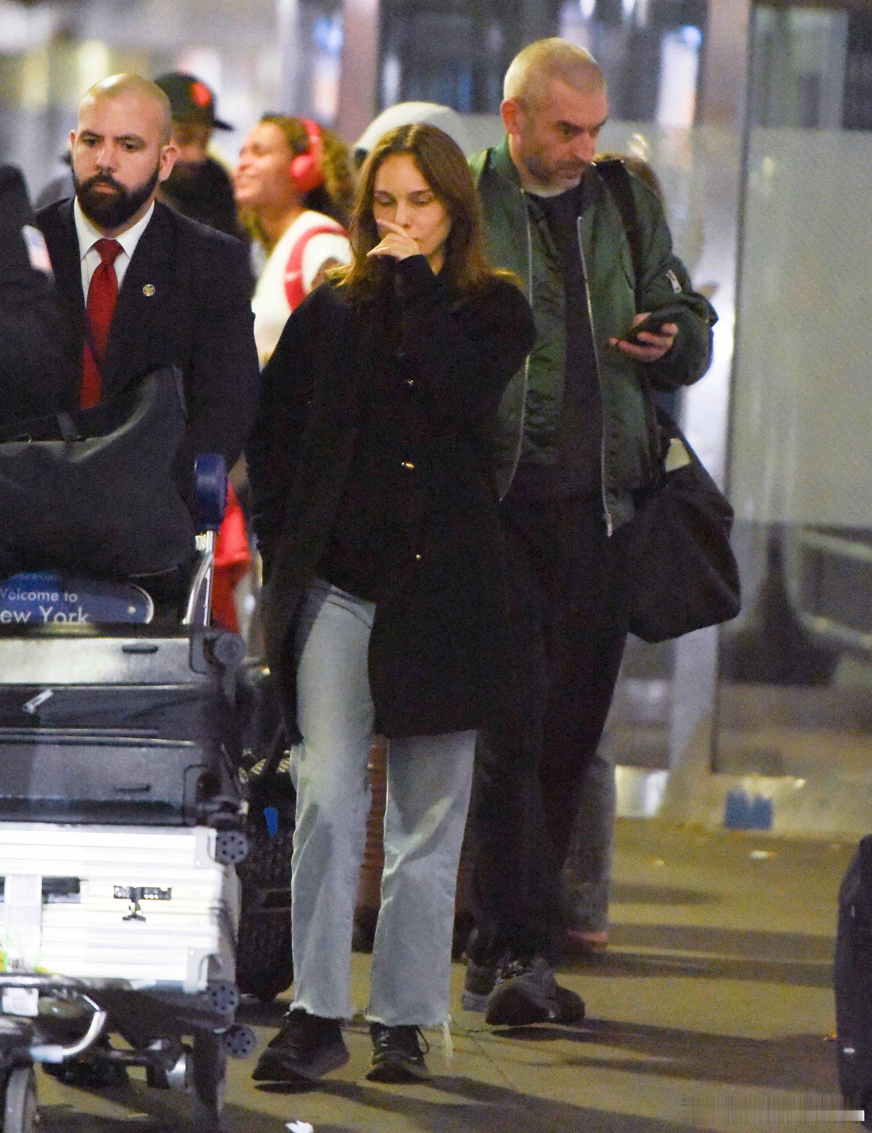 娜塔莉波特曼在纽约外出,和男友Tanguy Destable一起低调抵达纽约肯尼迪国际机场
