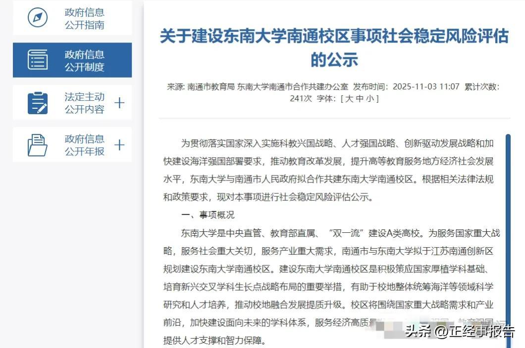 南通与东南大学的合作是一次双赢的山海奔赴。 南通与东南大学是在2023年签署合作协议,正式决定以东南大学海洋高等研究院为基础升级建设南通校区。南通划拨千亩土地为东南大学建设国际校区使用。 根据规划显示,东南大学南通校区位于南通市人民医院东南侧,由三幅地块组成,占地面积约1063亩,规划建筑面积41万平米。 东南大学南通校区将发挥自身学科优势,叠加南通在海工装备和海洋产业上的产业优势,共同打造升级版的现代海洋产业版图。 南通 东南大学 (图片引用自网络)