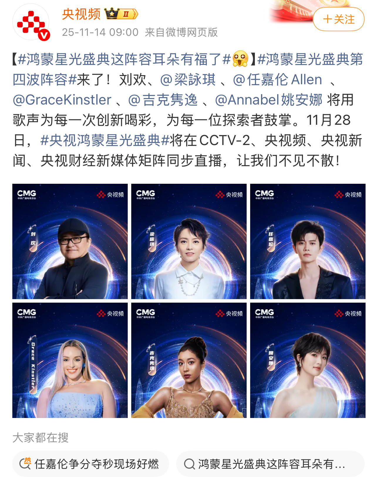 鸿蒙星光盛典第四波阵容官宣任嘉伦,国超最近真的好忙啊!!好多活动,粉丝过年了!