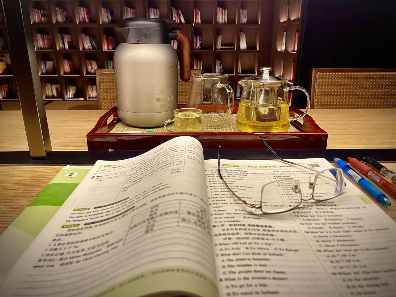 太早了,一个人没有,诺大个洗浴中心就我一个人。洗漱完毕,要了一壶茶,找个安静的地方看会儿书。还是没人,真安静。算笔经济账,这比图书馆环境好多了,也比收费的读书咖省多了,又能洗浴又能汗蒸还能睡觉和吃饭。多好一个读书的地方![耶]