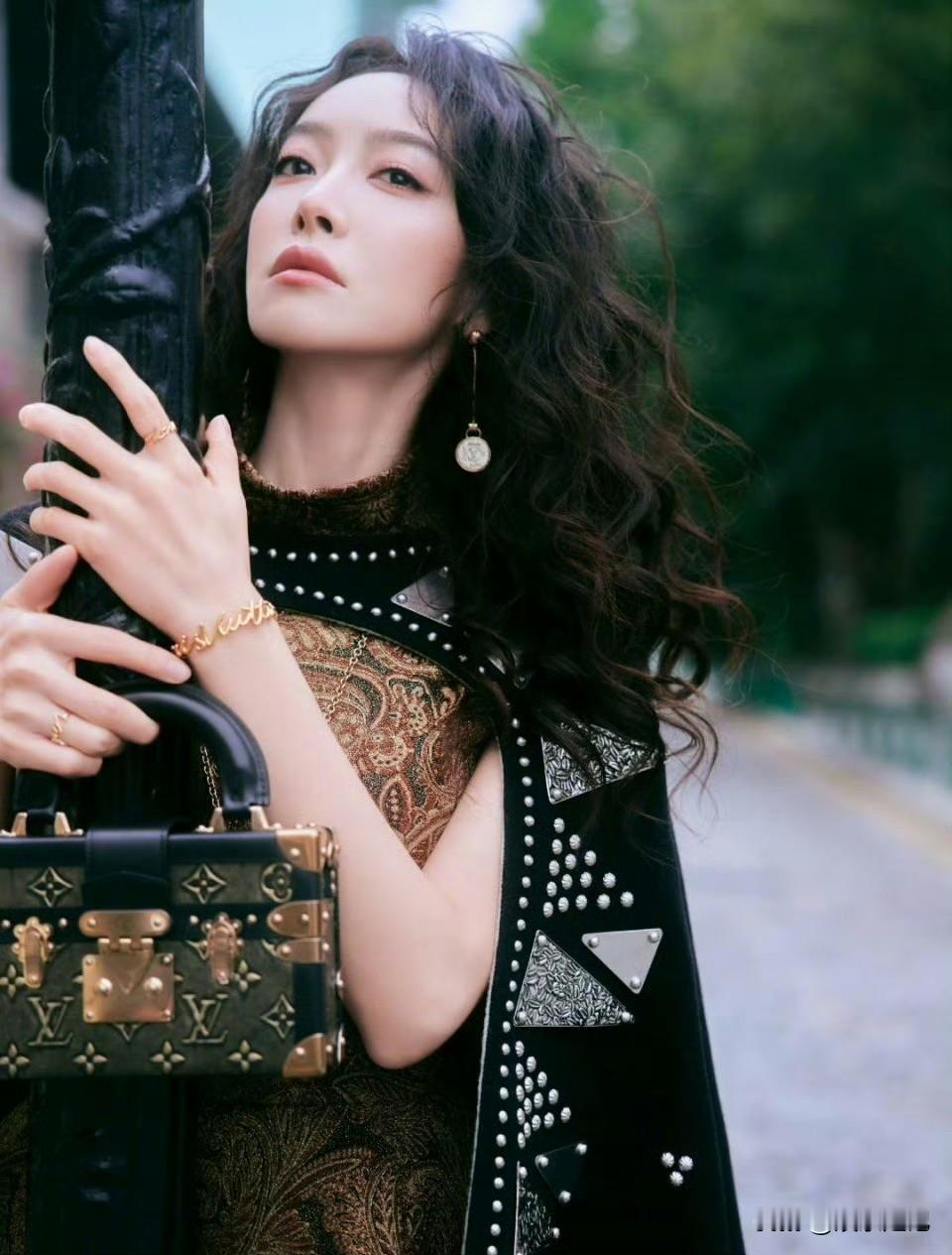 宋茜的黑色铆钉斗篷简直是酷飒女王的终极战袍