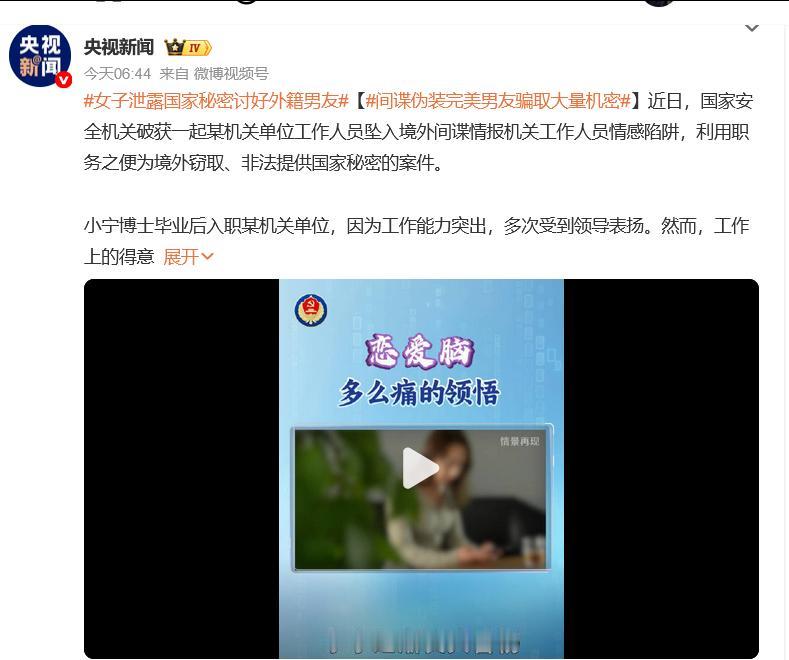 毫无底线,卖国求偶:泄露国家秘密以讨好外籍男友的行为,不仅严重违反国家法律法规,更是对国家安全的极大威胁。这种行为体现了个人道德与法律意识的严重缺失,将私情置于国家利益之上,是对国家、民族的不负责任。我们必须坚决反对并依法惩处此类行为,同时加强国家安全教育,提高公民的国安意识。我认为所有政府从业人员一旦涉及到与国外人员通婚的都不该再呆在她那个位置了。而且涉及到出国居住的,都不该享受国家的养老政策 。你想一下,加入到外国籍还享受中国的养老福利,想一下真的的无稽之谈。